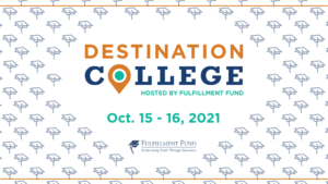 For 25 years Destination College has sought to connect students who often come from challenging situations – economically disadvantaged students who are the first in their families to attend college – with the information and support they need to go to college. This year will be no different. The Fulfillment Fund looks forward to putting on yet another memorable experience to inspire youth to keep reaching for their dreams. We welcome you all to join us on October 15th and 16th for this amazing event.